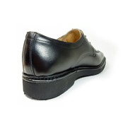 甲革はソフト牛革で非常に柔らかく、ソールも軽いうえクッション性に優れ、大変履きやすい革靴です。土踏まずのアーチサポートと、中足骨のアーチサポートのパッドが内蔵されたコンフォート性のあるインソールで、歩行時の疲労を軽減します。また、かかと上部にもパッドが入っており、踵のフィット感を高め靴擦れを防止します。足幅も4Eとゆったり設計で、幅広・甲高の方にも是非おすすめです。ソールは、スニーカーソールのような形状の特殊スポンジラバーで、軽量かつ耐久性・クッション性に優れ、革靴でありながらスニーカーのような快適な履き心地を実現。国産(日本製)のしっかりした造りの紳士靴で履きよいため、当店ではリピーターが多く定番的に人気のある靴です。デザインもオーソドックスかつシャープで、あらゆるビジネスシーンで活躍する一足です。