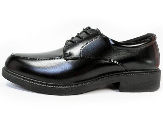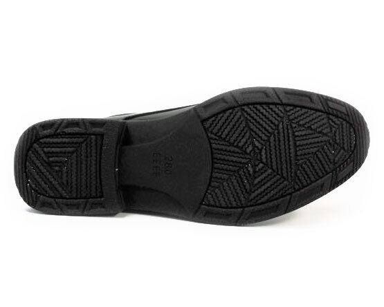 甲革(アッパー)は雨や汚れに強い合成皮革、ソールはクッション性・耐摩耗性に優れた軽量合成ラバーです。ワイズ(靴幅)も4E(EEEE)と幅広タイプで、靴内はふかふか低反発クッションインソールを使用し足あたりが良く、ヒールも歩行を助ける形状になっていて大変履きよい設計です。インナー(裏地)とインソールはメッシュで吸湿性・通気性(乾燥性)がよく、靴内を清潔に保ちます。オーソドックスなデザインで、幅広いビジネスシ-ンで活躍します。