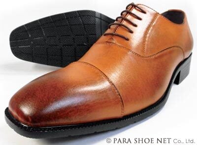シルエットの綺麗なスタイリッシュな紳士靴です。アッパー(甲革)は雨や汚れに強い合成皮革、色も焦がしのついたアンティーク調のブラウンで風合いがあります。ソールは滑りにくい合成ゴム。ワイズ(足幅)も3E(EEE)と余裕があり足入れが良く履きよい靴です。ヒールはやや高めで3.7cmあります。オーソドックスなデザインで、幅広いビジネスシーンに活躍します。