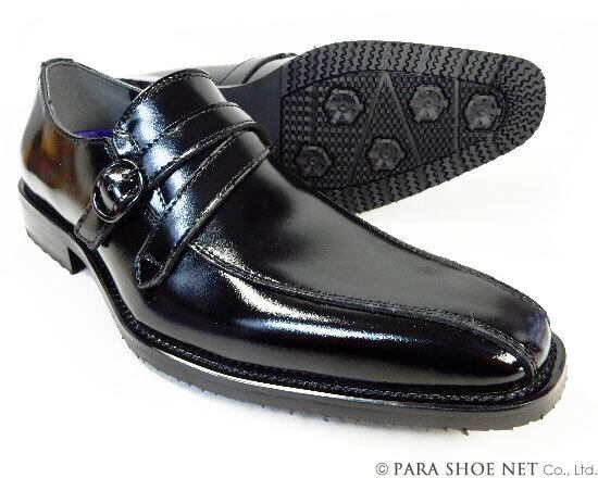 PARASHOE(パラシュー)本革 ストラップヴァンプスリッポン 防滑ビジネスシューズ 黒 ワイズ(足幅)3E(EEE)23cm(23.0cm)、23.5cm、24cm(24.0cm)【小さいサイズ(スモールサイズ)メンズ 革靴・紳士靴】(ps-16103-blk)