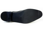つま先はチゼルトゥのシャープなデザインで、シルエットのきれいな紳士靴です。アッパー(甲革)は良質な柔らかなレザー(牛革)で足馴染みが良く、裏地(ライニングおよびインソール)も天然皮革(山羊革)で吸湿性に富みやわらかな足入れです。ソールは滑りにくい合成ラバーで減りにくい素材を使用。