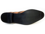 つま先はチゼルトゥのシャープなデザインで、シルエットのきれいな紳士靴です。アッパー(甲革)は高品質の柔らかな天然皮革(牛革)で足馴染みが良く風合いがあります。ソールは軽量の合成ゴム底。足幅(ワイズ)は4E(EEEE)と幅広甲高で足入れが良く履きよい靴です。