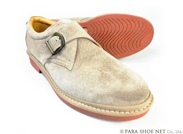 Rinescante Valentiano 本革スウェード モンクストラップ ビジネスシューズ ダークベージュ(レンガソール)ワイズ4E(EEEE)24cm(24.0cm)【小さいサイズ(スモールサイズ)革靴・紳士靴】 (PSN-3822S-DVG-RED)