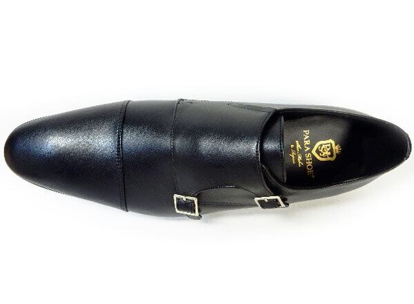 PARASHOE 本革 ダブルモンクストラップ ビジネスシューズ 黒 ワイズ 4E(EEEE)27.5cm、28cm(28.0cm)、28.5cm、29cm(29.0cm)、29.5cm、30cm(30.0cm)、31cm(31.0cm)、32cm(32.0cm)【大きいサイズ(ビッグサイズ)メンズ 革靴・紳士靴】(PS-1808-BLK)