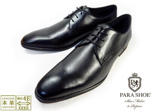 PARASHOE 本革 プレーントゥ ビジネスシューズ 黒 ワイズ 4E(EEEE)27.5cm、28cm(28.0cm)、28.5cm、29cm(29.0cm)、29.5cm、30cm(30.0cm)、31cm(31.0cm)、32cm(32.0cm)【大きいサイズ(ビッグサイズ)メンズ 革靴・紳士靴】 (PS-1809-BLK)