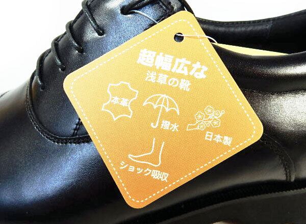 オーソドックスなデザインで、幅広いビジネスシーンで活躍する靴です。甲革(アッパー)は良質な革で柔らかく、足幅は6E(Gワイズ/EEEEEE)と非常に広めの造りですので、段広甲高(だんびろこうだか・ばんびろ/幅が広く甲が高い)の方に是非おすすめの一足です。ソールは屈曲性・クッション性に優れた柔らかな軽量ラバーソールで、クッション吸収素材のインソールで大変履きよい靴です。国産(日本製)のしっかりした造りの革靴です。