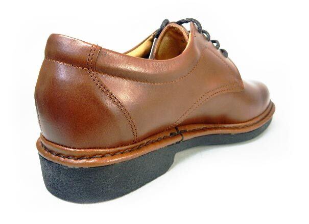 甲革はソフト牛革で非常に柔らかく、ソールも軽いうえクッション性に優れ、大変履きやすい革靴です。土踏まずのアーチサポートと、中足骨のアーチサポートのパッドが内蔵されたコンフォート性のあるインソールで、歩行時の疲労を軽減します。足幅も4Eとゆったり設計で、幅広・甲高の方にも是非おすすめです。ソールのラバーは耐摩耗性に優れた素材で減りにくく、たいへん長持ちします。国産(日本製)のしっかりした造りの紳士靴で履きよいため、当店ではリピーターが多く定番的に人気のある靴です。デザインもオーソドックスで、ビジネスはもちろんカジュアルでも活躍する一足です。